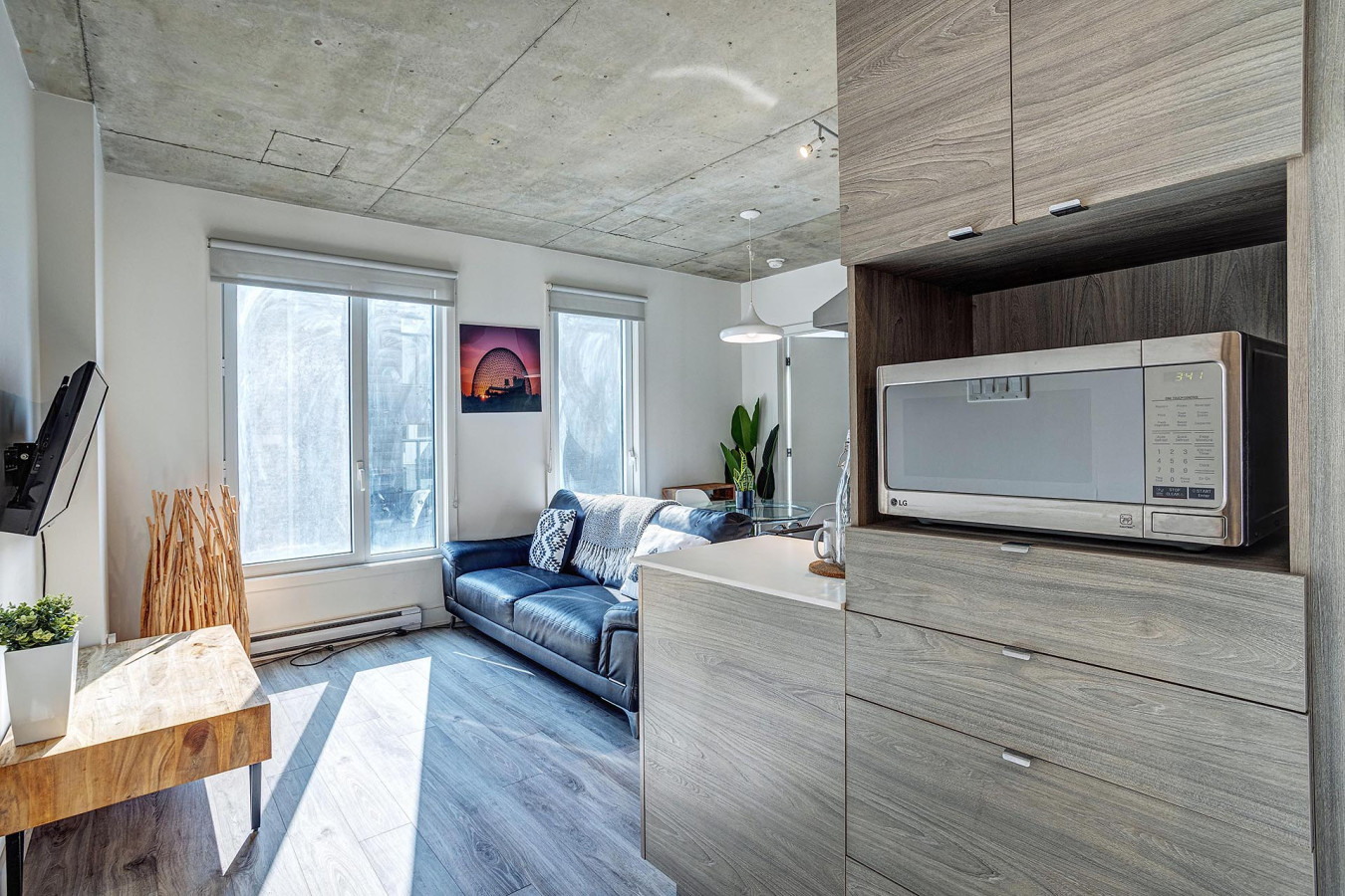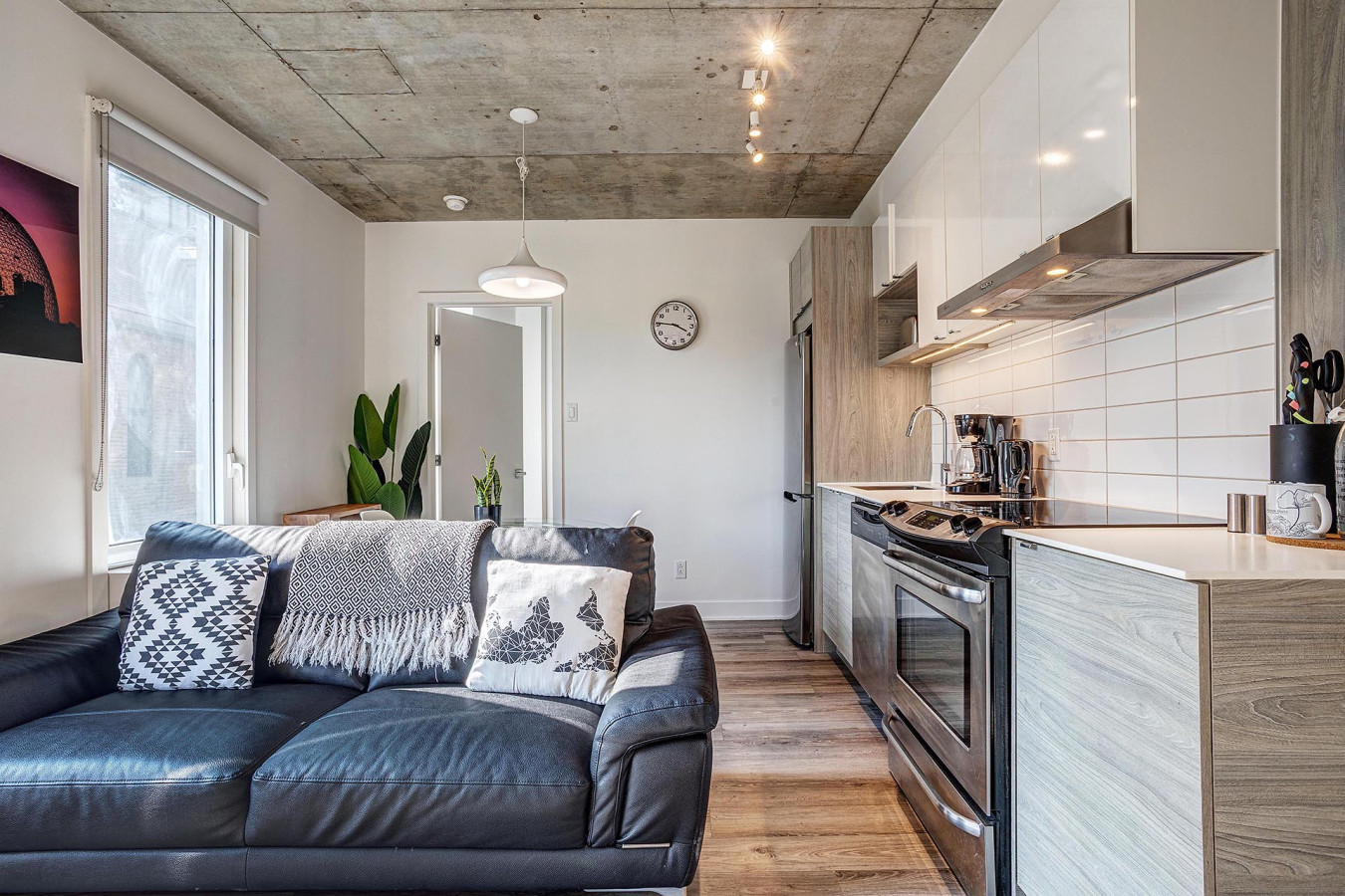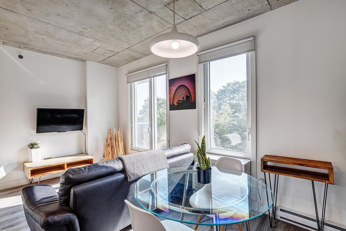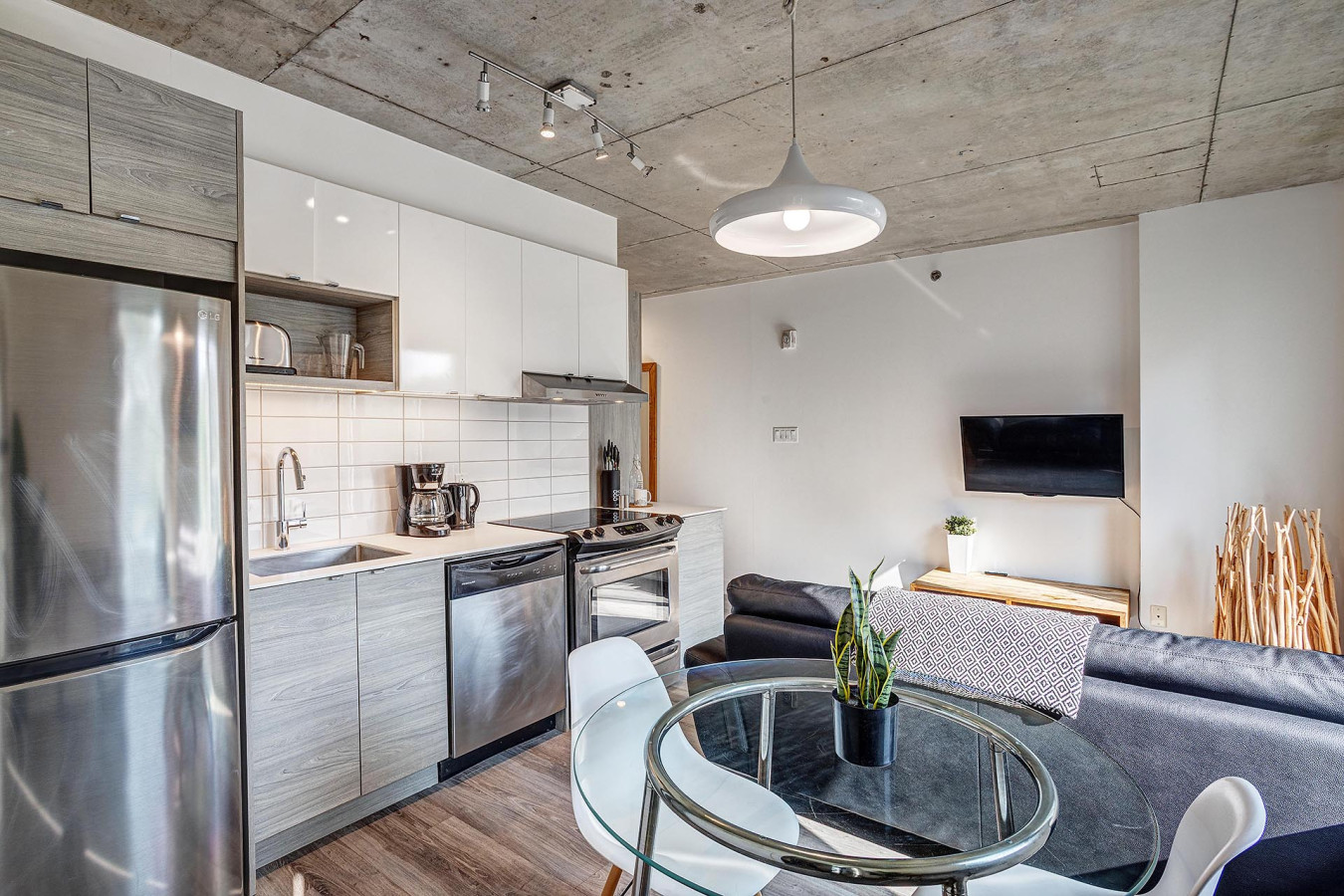 Welcome to your stylish and luxurious home away from home Step into a beautifully designed living space that seamlessly connects to a spacious, open-concept kitchen and dining area, all while showcasing breathtaking skyline views of Montreal. Relax on the plush couch, catch up on your favorite shows on the Smart TV, or simply admire the stunning cityscape—perfect for unwinding after a day of exploring. Every detail in this elegant retreat combines comfort with sophistication, ensuring a memorable stay in the heart of the city.