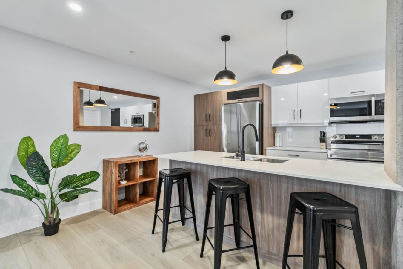 Enjoy cooking in a modern, fully equipped kitchen with sleek countertops, premium appliances, and ample storage space. Whether you’re whipping up a quick snack or preparing a gourmet meal, this kitchen provides all the tools and comfort you need for a seamless culinary experience.
