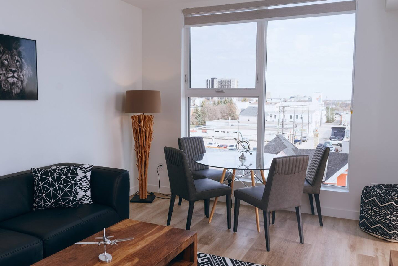 Relax in the spacious living area, designed with comfort and style in mind. Enjoy panoramic views of Winnipeg’s Osborne Village, catch up on your favorite shows on the Smart TV, or simply unwind in this serene retreat.