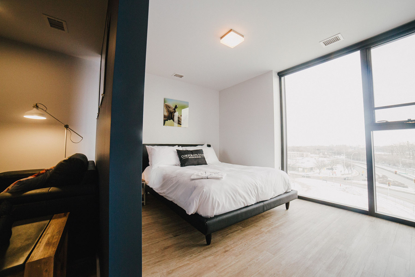 Stradbrook at East Village offers modern studio apartment in Winnipeg's vibrant River Heights neighborhood. Each unit features floor-to-ceiling windows, luxury vinyl plank flooring, and in-suite laundry facilities. Ideal for solo traveller's or up to two guests, these studios offer a modern and functional living experience in the heart of Winnipeg.