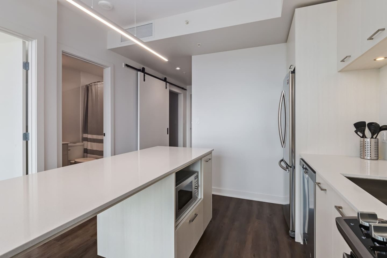 Enter a bright, open-concept living space that warmly greets you with its modern aesthetic and smooth transition into the gourmet kitchen and private laundry area. This thoughtfully designed space prioritizes both convenience and tranquility from the moment you step inside.