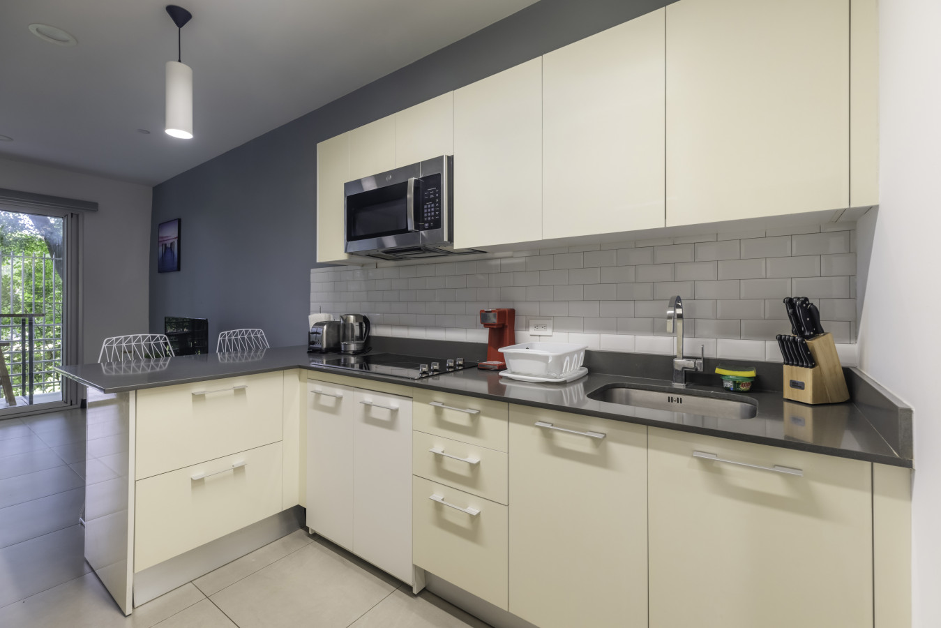Prepare meals with ease in the fully-equipped kitchen featuring sleek countertops, modern appliances, and plenty of space. From quick breakfasts to full dinners, this kitchen is ready for every culinary need.