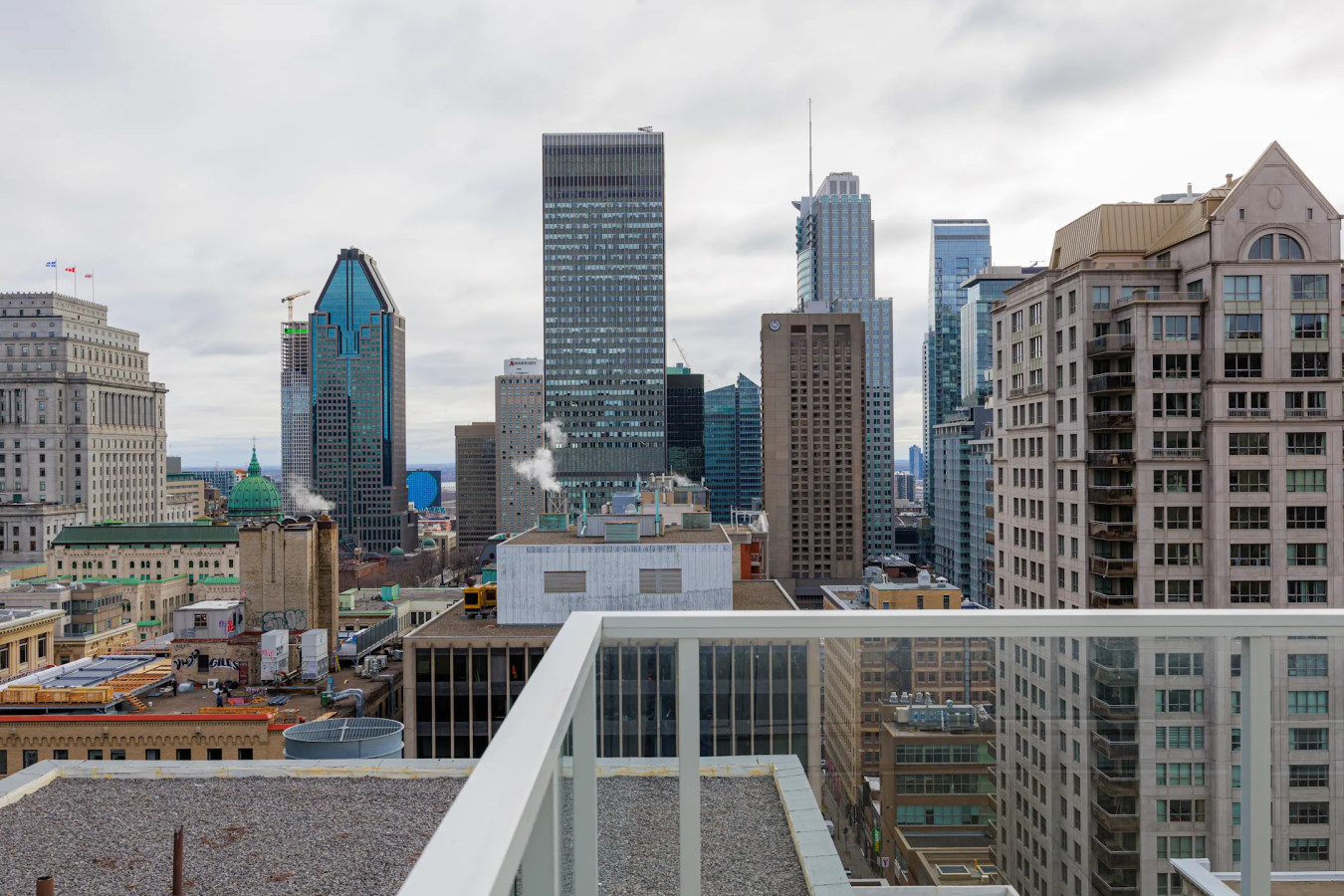 Spacious and modern 1-Bedroom Apartment Downtown Montreal featuring elegant interiors, 9′ ceilings, and designer finishes. Enjoy full utilities and high-speed Wi-Fi included, plus in-suite washer/dryer and air conditioning for comfort. Residents benefit from exclusive access to a rooftop terrace with stunning city views, a state-of-the-art fitness centre, and stylish coworking lounges—perfect for both relaxation and productivity.